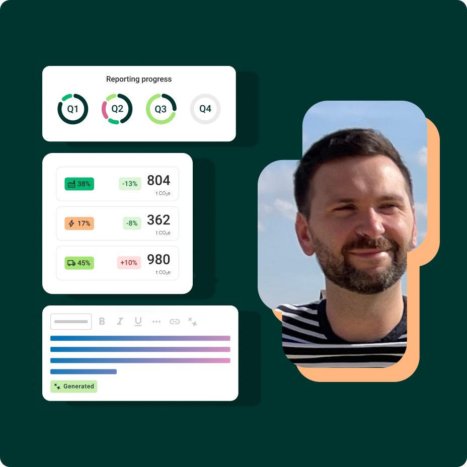 Our platform helps you turn sustainability data into real business value: automate reporting, track and reduce emissions, benchmark against peers, and use that progress to attract investors—all in one place.