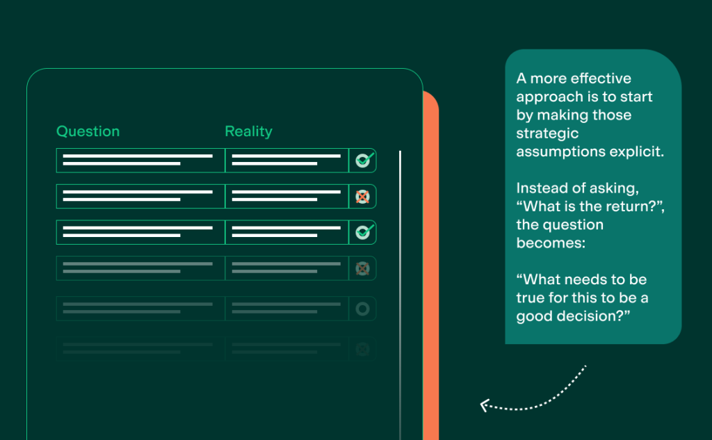 A more effective approach is to start by making those strategic assumptions explicit. Instead of asking, “What is the return?”, the question becomes: