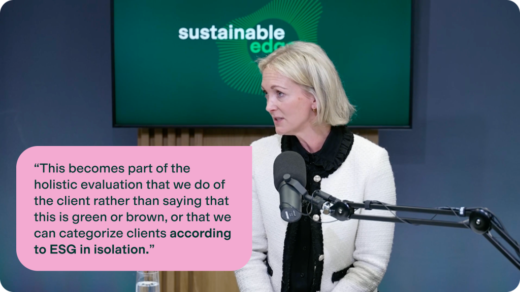 Hilde further highlights: “And they mentioned a lot of processes within the bank that we have to integrate E, S, and G issues into.”